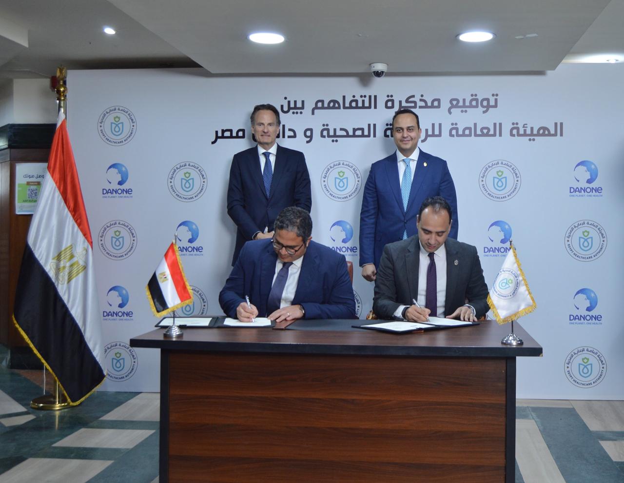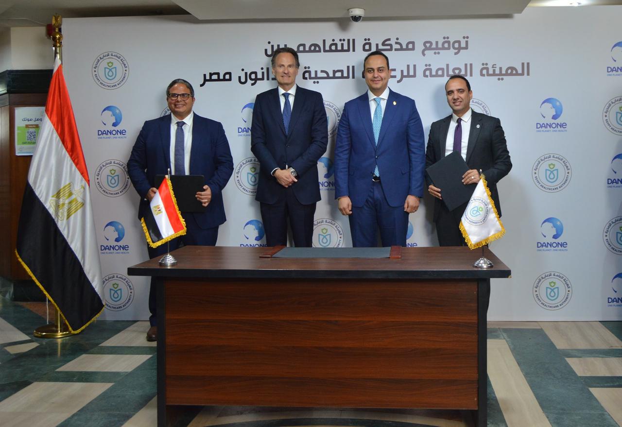 شهد الدكتور أحمد السبكي، رئيس الهيئة العامة للرعاية الصحية، المشرف العام على مشروع التأمين الصحي الشامل، كريستان شتامكويتر، الرئيس التنفيذي لمنطقة آسيا والشرق الأوسط وأفريقيا وعضو اللجنة التنفيذية لشركة دانون، مراسم توقيع مذكرة تفاهم بين الهيئة العامة للرعاية الصحية وشركة دانون مصر، الشركة الرائدة عالميًا في مجال الأغذية والمشروبات.