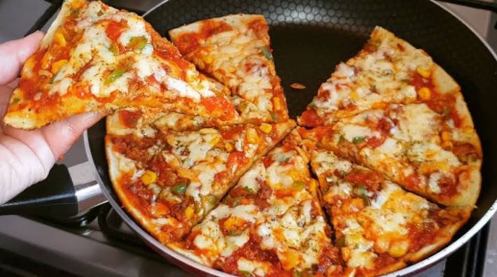 البيتزا من أهم الأطباق الإيطالية ومن أسرع الأكلات التي يمكن تحضيرها بسهولة في المنزل ويمكن حشوها بحشوات مختلفة حسب الرغبة، وبإمكانك تحضيرها بالمنزل بدون تخمير أو عجن عن طريق الطاسة وهي طريقة سهلة وسريعة إليك الخطوات: