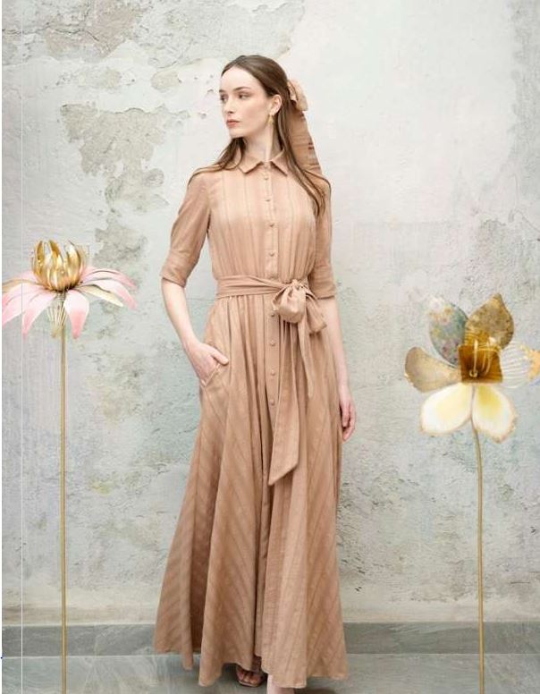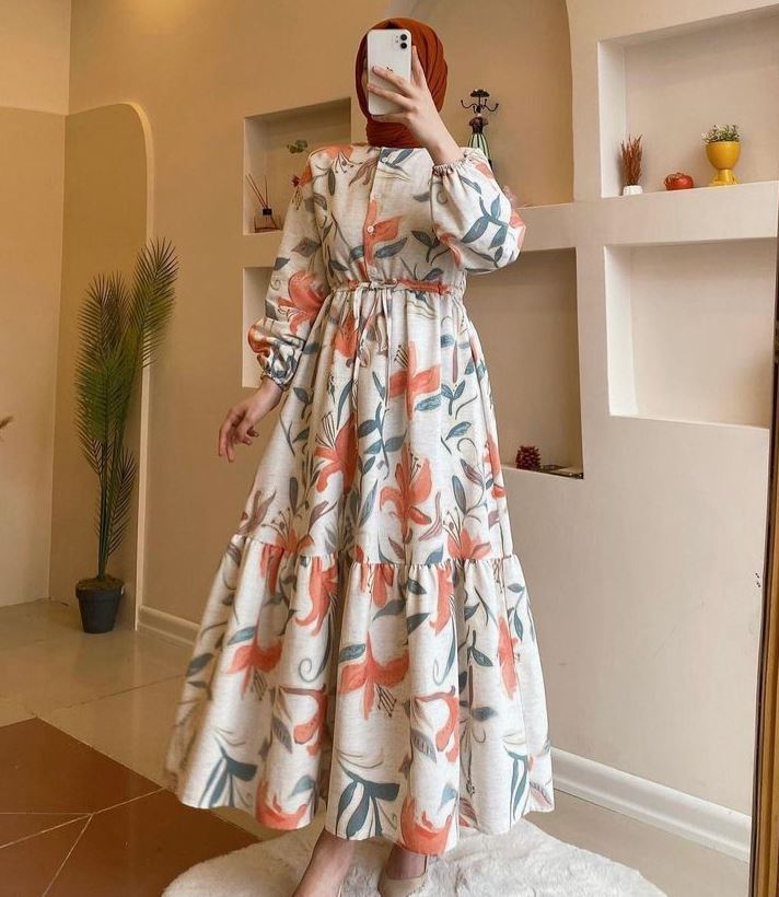 موديلات فساتين محجبات طويل مع طبقات متعددة يتميز هذا التصميم بوجود طبقات من القماش الخفيف لإضفاء لمسة من الأنوثة والرقي، كما يمكن أن يكون الفستان مزين بتفاصيل ناعمة مثل الدانتيل أو الكشكشات عند الأطراف، مع حزام عند الخصر لإبراز القوام.