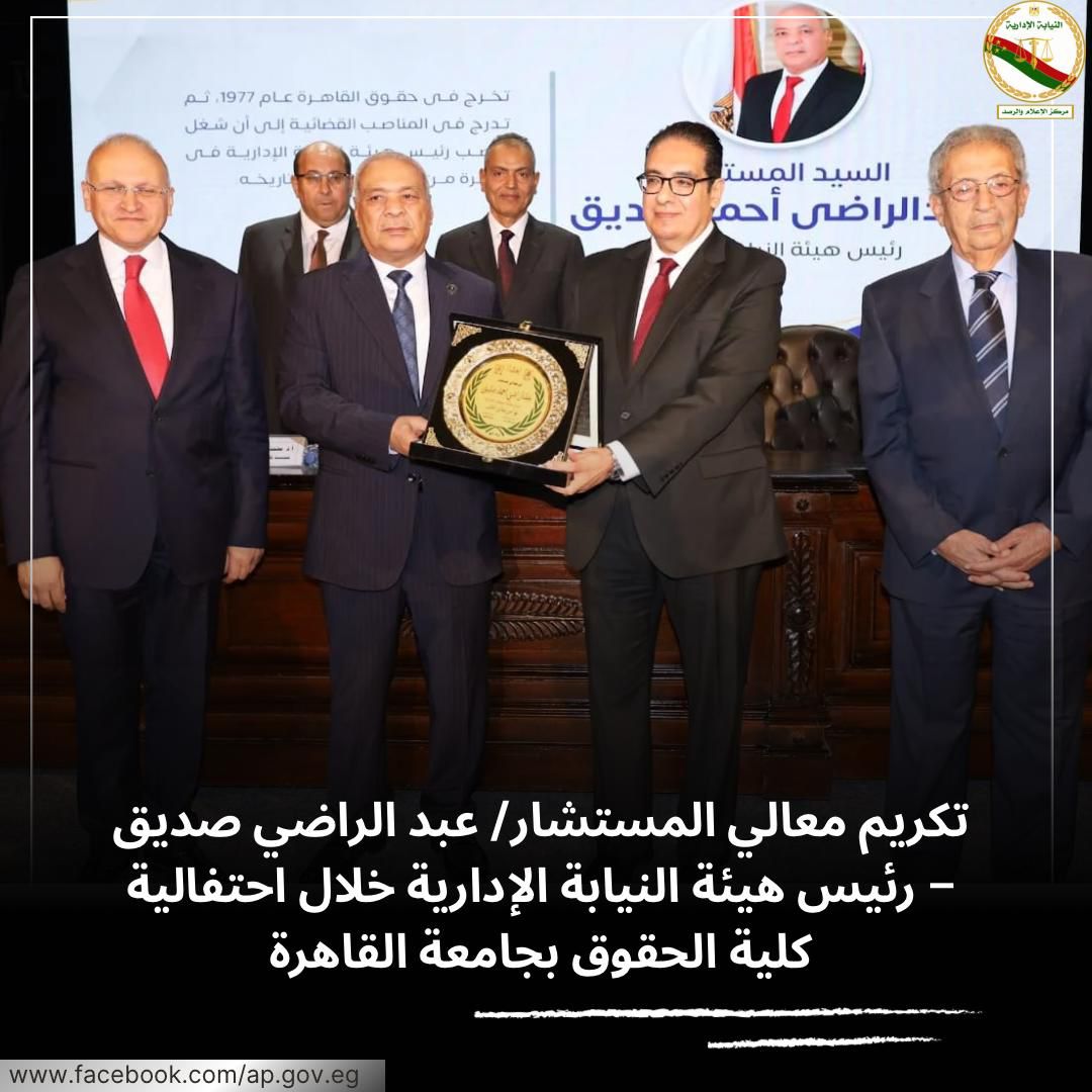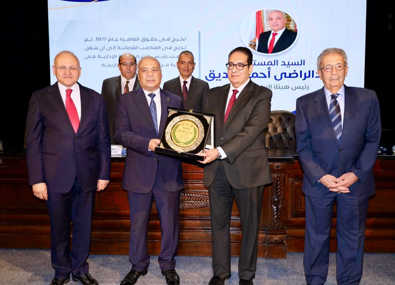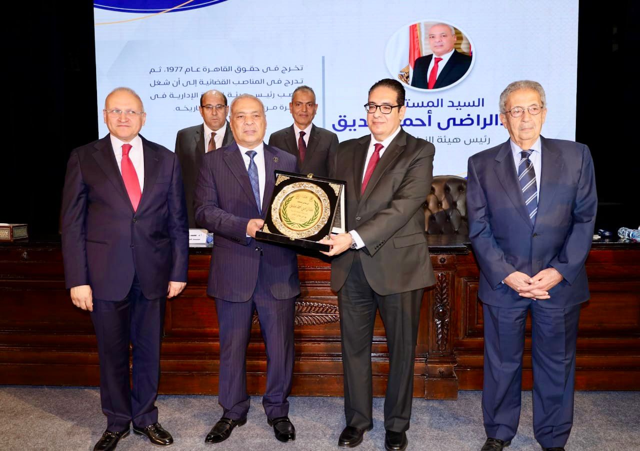 تكريم رئيس هيئة النيابة الإدارية خلال احتفالية كلية الحقوق بجامعة القاهرة