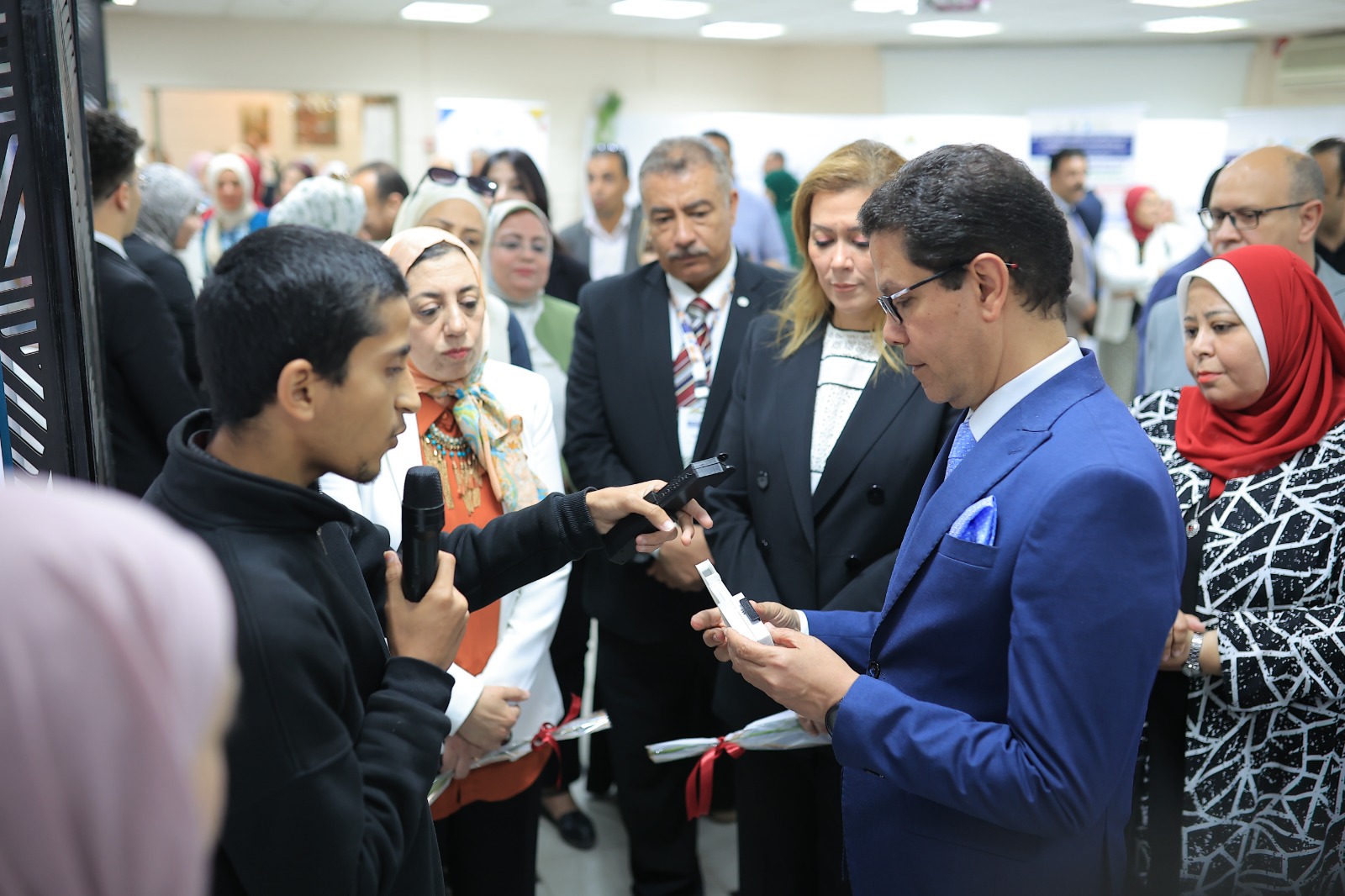 افتتح الدكتور ناصر الجيزاوى رئيس جامعة بنها ، والدكتورة رشا راغب المدير التنفيذي للاكاديمية الوطنية للتدريب معرضا لمشروعات الطلاب الخاصة بالعلوم التطبيقية والذى عقد على هامش المؤتمرالرابع للدراسات العليا فى العلوم التطبيقية بجامعة بنها.