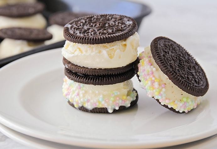 ايس كريم الساندوتش هو عبارة عن ساندوتش يتكون من طبقتين من بسكويت الشوكولاتة العادي أو الكوكيز، بينهما حشوة الآيس كريم يمكنك تحضيره في المنزل بكل سهولة وفرحي أطفالك بها إليك الخطوات :