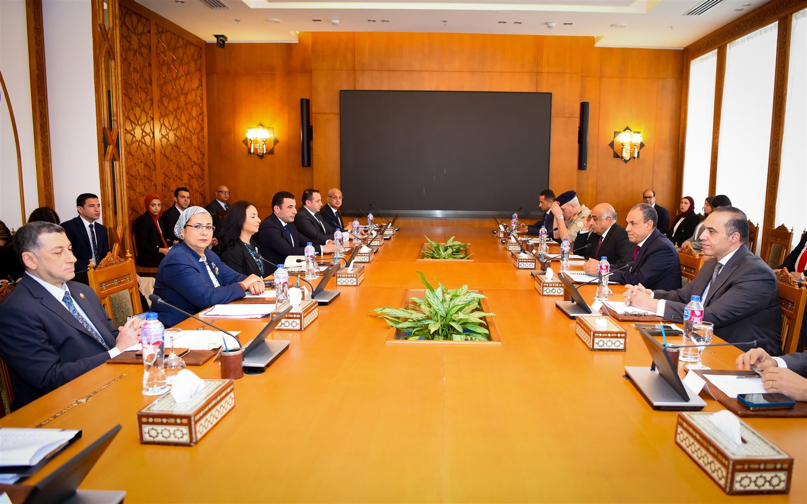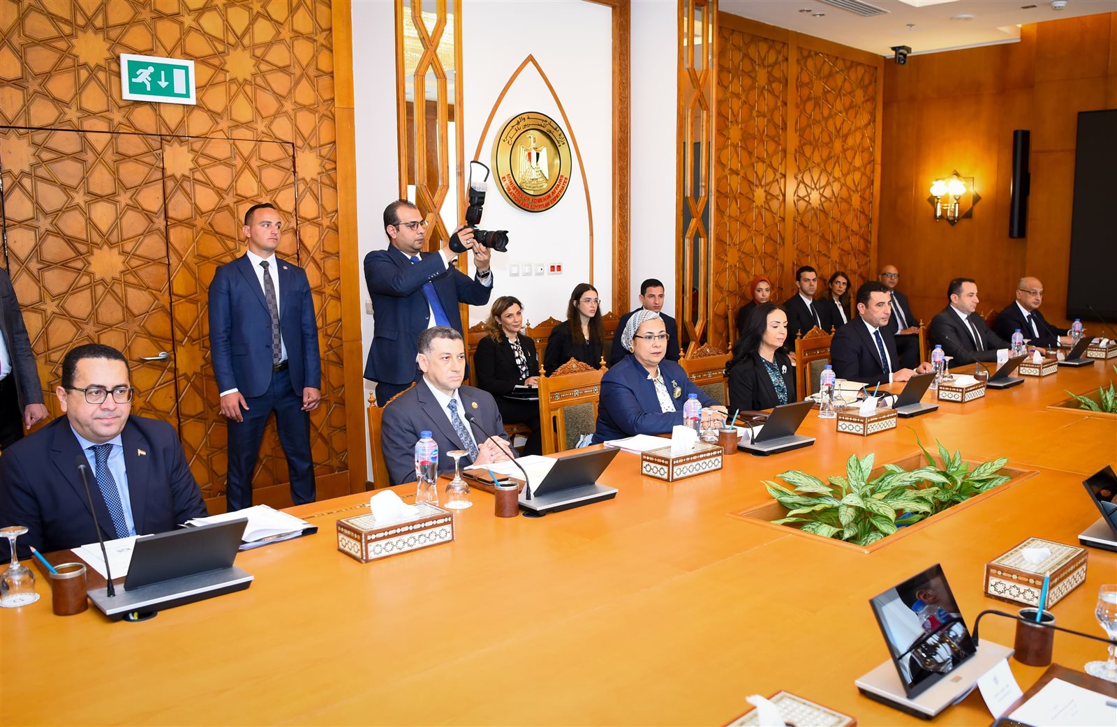 وشارك فى الاجتماع الدكتورة مايا مرسي وزيرة التضامن الاجتماعي، والمستشار محمود فوزي وزير الشئون النيابية والقانونية والتواصل السياسي، والمستشار عدنان فنجري وزير العدل، والدكتور ضياء رشوان رئيس الهيئة العامة للاستعلامات، والمستشارة أمل عمار رئيسة المجلس القومي للمرأة، والدكتورة ايمان كريم المشرف العام على المجلس القومي للأشخاص ذوي الإعاقة، والدكتور وائل محمد عبد الرازق أمين عام المجلس القومي للأمومة والطفولة وممثلين عن الجهات الوطنية المعنية الأعضاء في اللجنة، وذلك فى إطار توجيهات السيد رئيس الجمهورية بالعمل على الارتقاء بالمنظومة الحقوقية فى مصر.