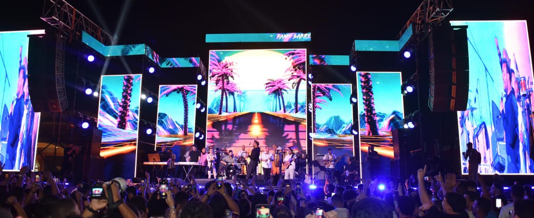 واشعل رامي الحفل بوصلة طربية رومانسية من أغانية المميزة التي تالق بها طوال مشواره الفني بالإضافة الى أغاني الفرصة التانية وكداب وحبيبي الاولاني والحب عيبنا والتي قدمها تلبية لرغبات المعجبين.
