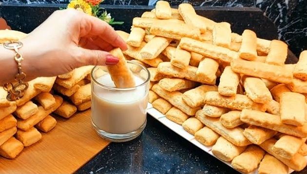 ثم تشكل العجينة اصابع وتوضع في صينية خبز وتترك نصف ساعة قبل تسويتها.