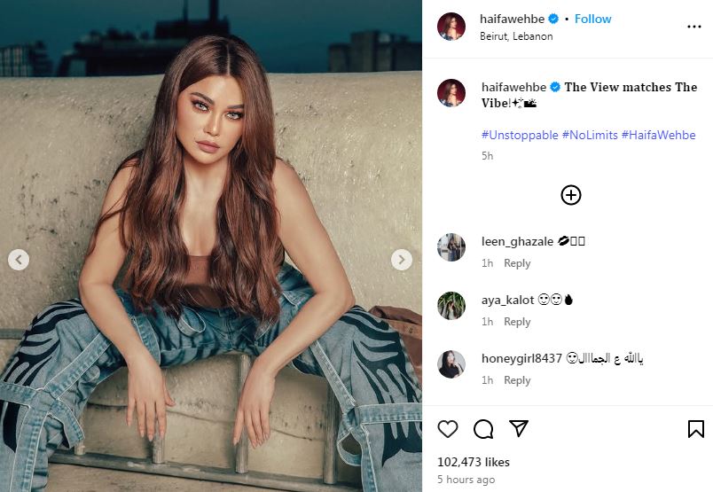 شاركت الفنانة هيفاء وهبي متابعيها مجموعة من الصور في أحدث ظهور لها عبر صفحتها الرسمية "إنستجرام" وخطفت الأنظار بإطلالة جريئة وظهرت وهي ترتدي كورسيه ضيق مع جاكيت شمواه .