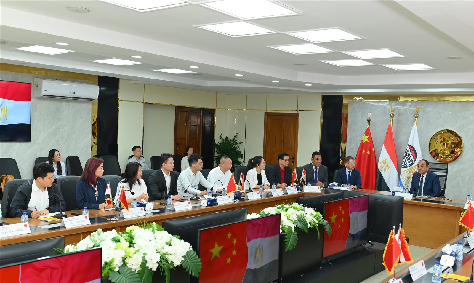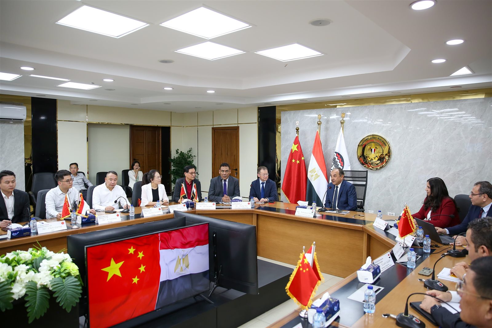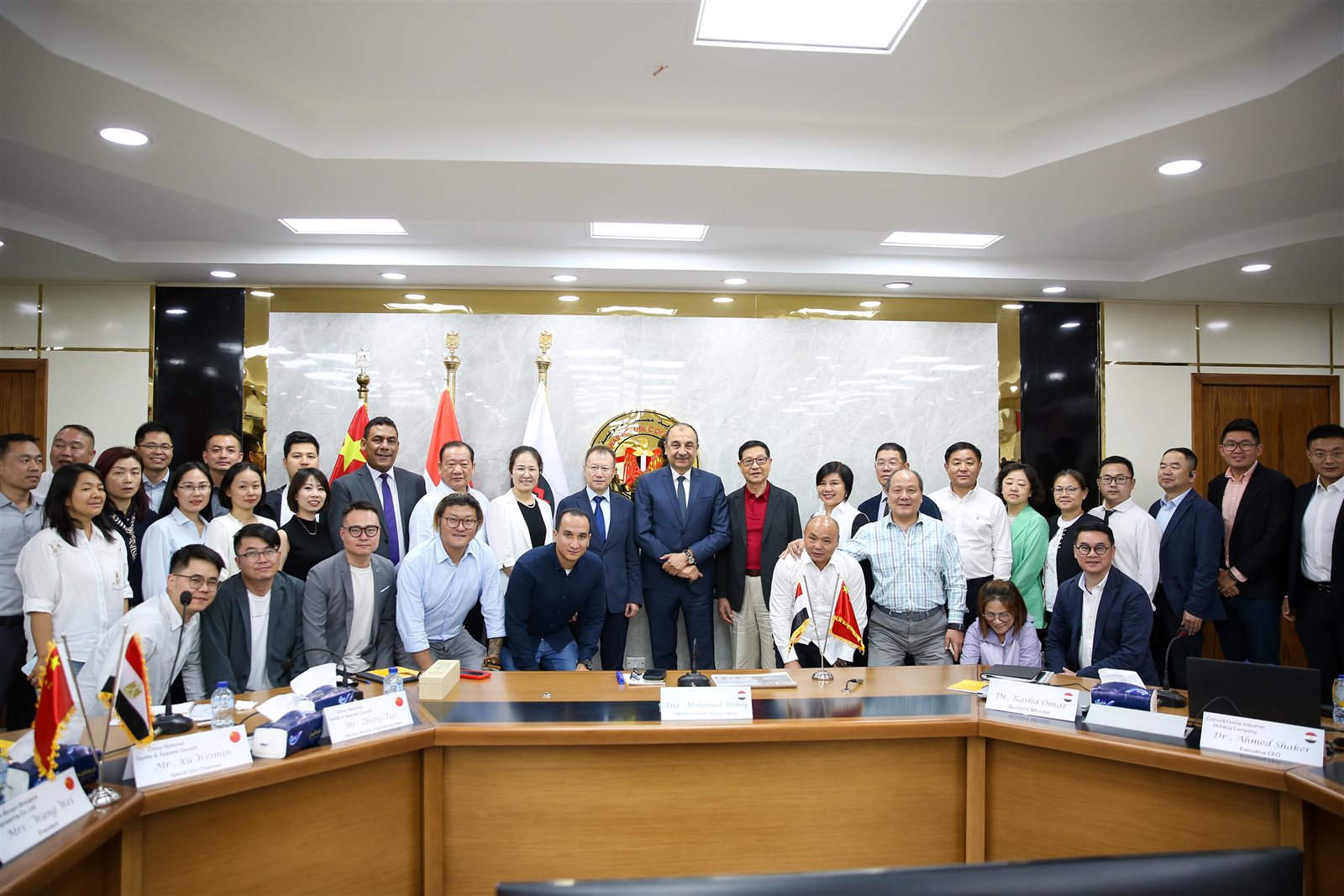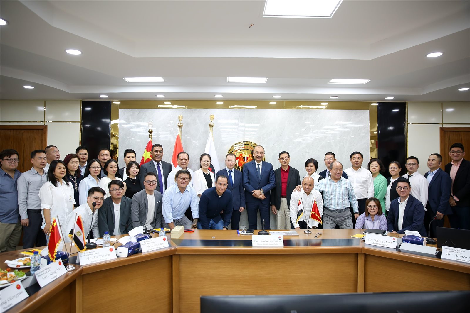 استقبل المهندس محمد شيمي، وزير قطاع الأعمال العام، وفدًا صينيًا رفيع المستوى يضم 37 من المستثمرين وممثلين عن نحو 25 شركة من كبرى الشركات العاملة في مجال الغزل والنسيج، برئاسة السيد چانغ تاو نائب مدير التسويق في المجلس الوطني الصيني للمنسوجات ونائب رئيس جمعية المنسوجات الصينية، بمقر الشركة القابضة للقطن والغزل والنسيج والملابس، وذلك في إطار تعزيز علاقات التعاون الاقتصادي والاستثماري بين مصر والصين، والترويج لفرص الشراكة في صناعة الغزل والنسيج، الذي يعد أحد أهم القطاعات الصناعية.