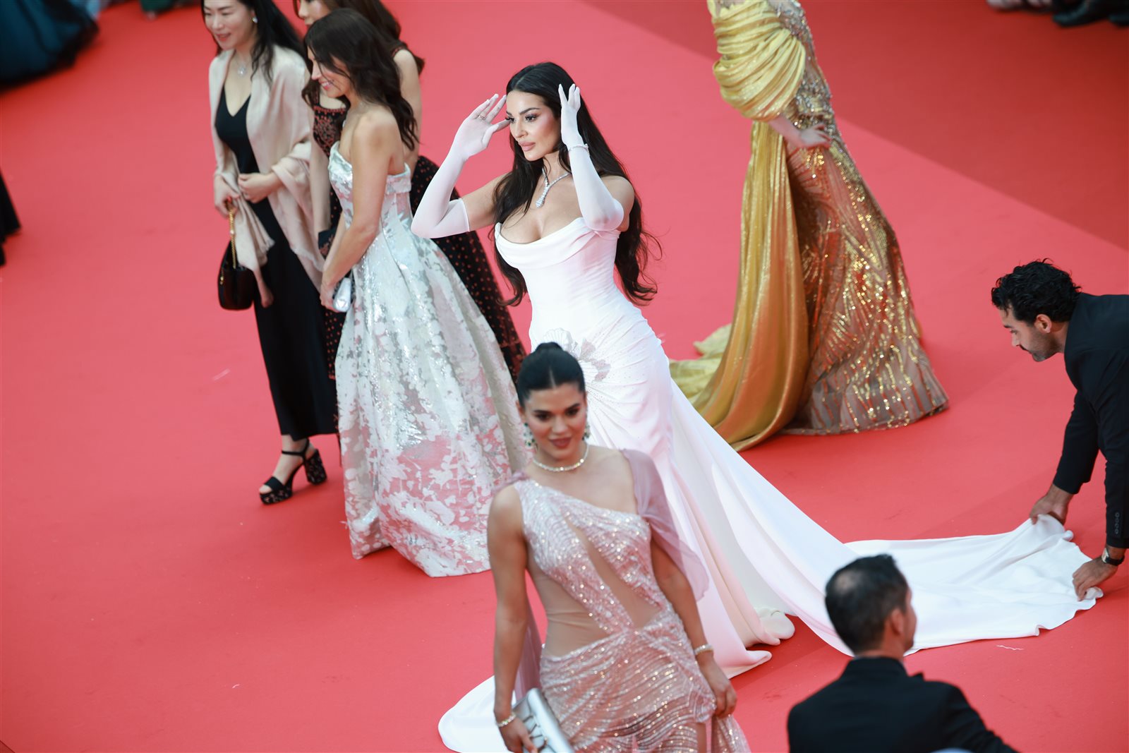 وصلت النجمة اللبنانية نادين نسيب نجيم إلى السجادة الحمراء لمهرجان كان السينمائي في دورته الـ78، والذي يستمر حتى 24 مايو الجاري، بإطلالة أنيقة خطفت بها الأنظار، حيث ارتدت فستانًا أبيض وكانت من أوائل الحضور على السجادة.