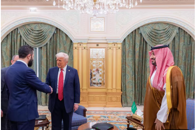 وعقد اللقاء بين ترامب والشرع خلف أبواب مغلقة، لكن صورا نشرت لاحقا أظهرت ترامب وهو يصافح الشرع، وكان من بين المشاركين ولي العهد السعودي محمد بن سلمان .