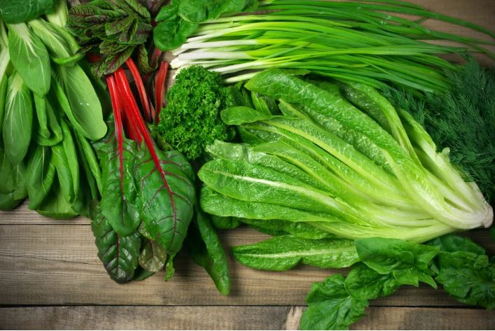 الخضراوات الورقية الخضراء الداكنة ، مثل اللفت والسبانخ والبروكلي والجرجير فيتامينات هائلة للجسم وما يكفي من الحديد والكالسيوم التي تجعل الأظافر أكثر قوة.