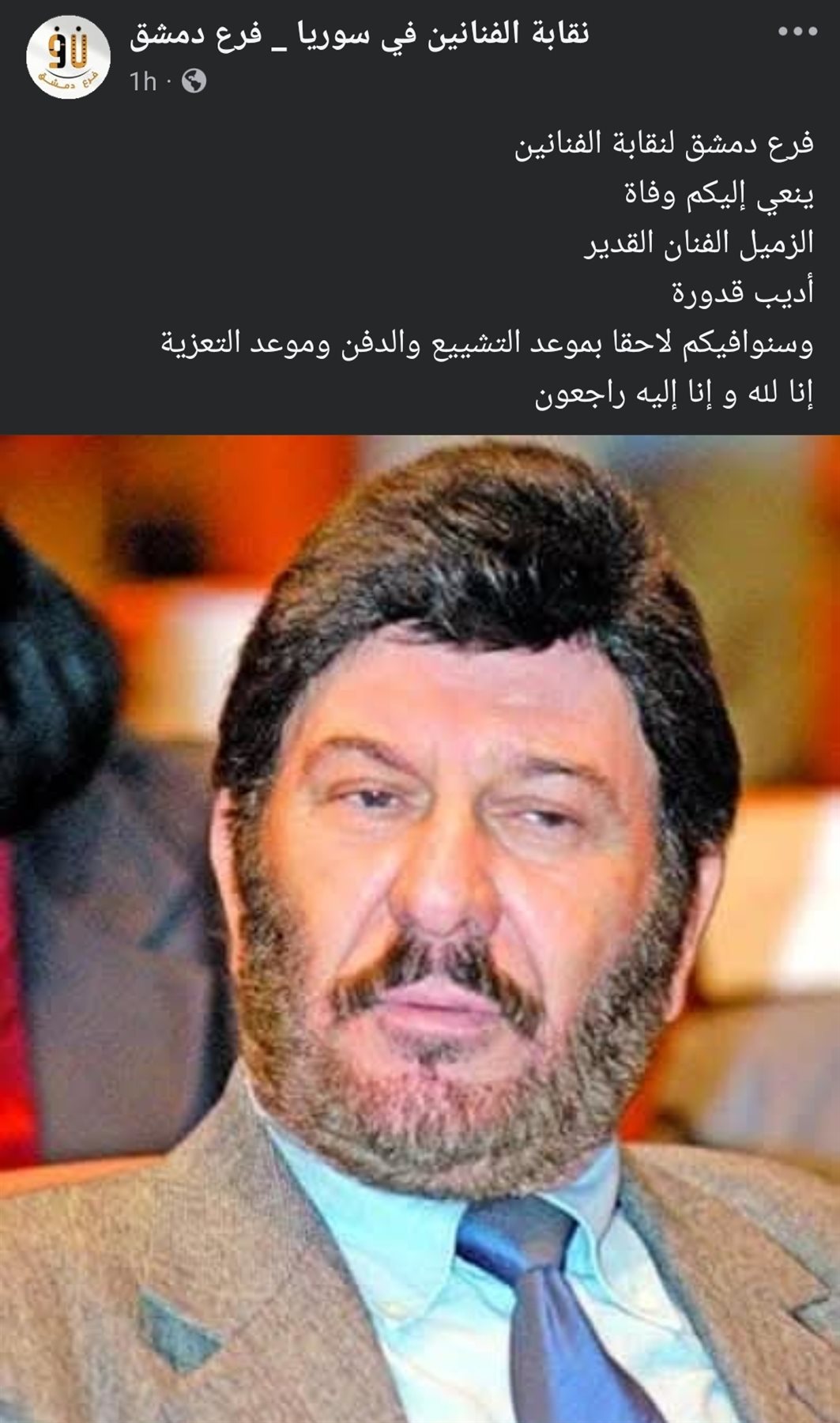 وفاة الفنان السوري أديب قدورة بعد صراع مع المرض