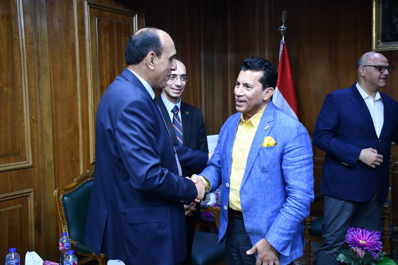 وعقد الجانبان لقاءً قصيراً في مكتب المحافظ، استعرضا خلاله أجندة الجولة وأهم الملفات المطروحة على جدول الأعمال، في ضوء حرص الوزارة والمحافظة على تعزيز سبل التعاون المشترك لتطوير قطاعي الشباب والرياضة، بما يخدم أبناء القليوبية.