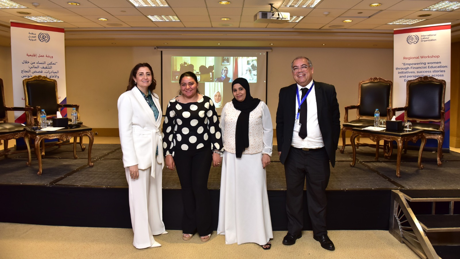 شهدت الورشة فعاليات تبادل الخبرات بين ٣ دول مصر وتونس والمغرب باعتبارهم الدول المستهدفة في مشروع عمل لائق للمرأة في مصر وتونس والمغرب في مجال التثقيف المالي.