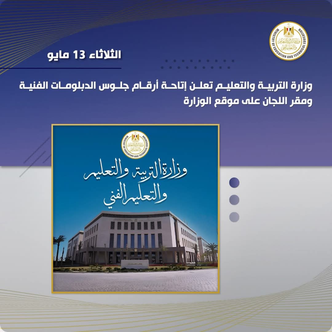في إطار استعدادات وزارة التربية والتعليم والتعليم الفنى الخاصة بأعمال امتحانات الدبلومات الفنية (صناعي - زراعي - تجاري - فندقي) للعام الدراسى٢٠٢٤/ ٢٠٢٥، أعلنت الوزارة عن إتاحة أرقام جلوس الدبلومات الفنية ومقر اللجان عبر الموقع الرسمي الوزارة .