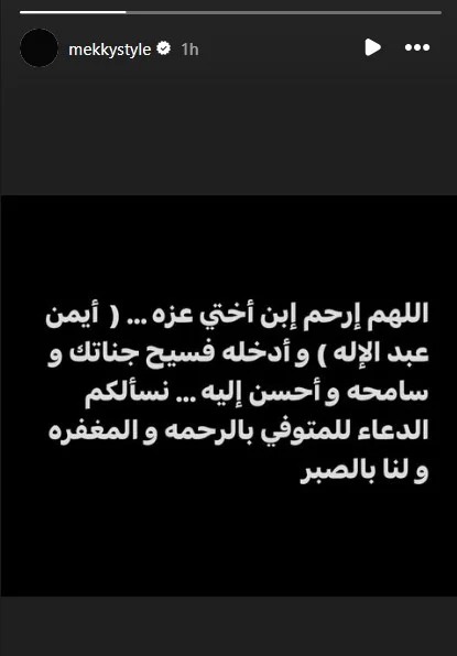 ونشر مكي على صفحته الرسمية على موقع التواصل الإجتماعي لنشر الصور والفيديوهات الانستجرام، قائلا: "اللهم إرحم إبن أختي عزه، ( أيمن عبد الإله ) وأدخله فسيح جناتك و سامحه و أحسن إليه، نسألكم الدعاء للمتوفي بالرحمه والمغفره ولنا بالصبر".