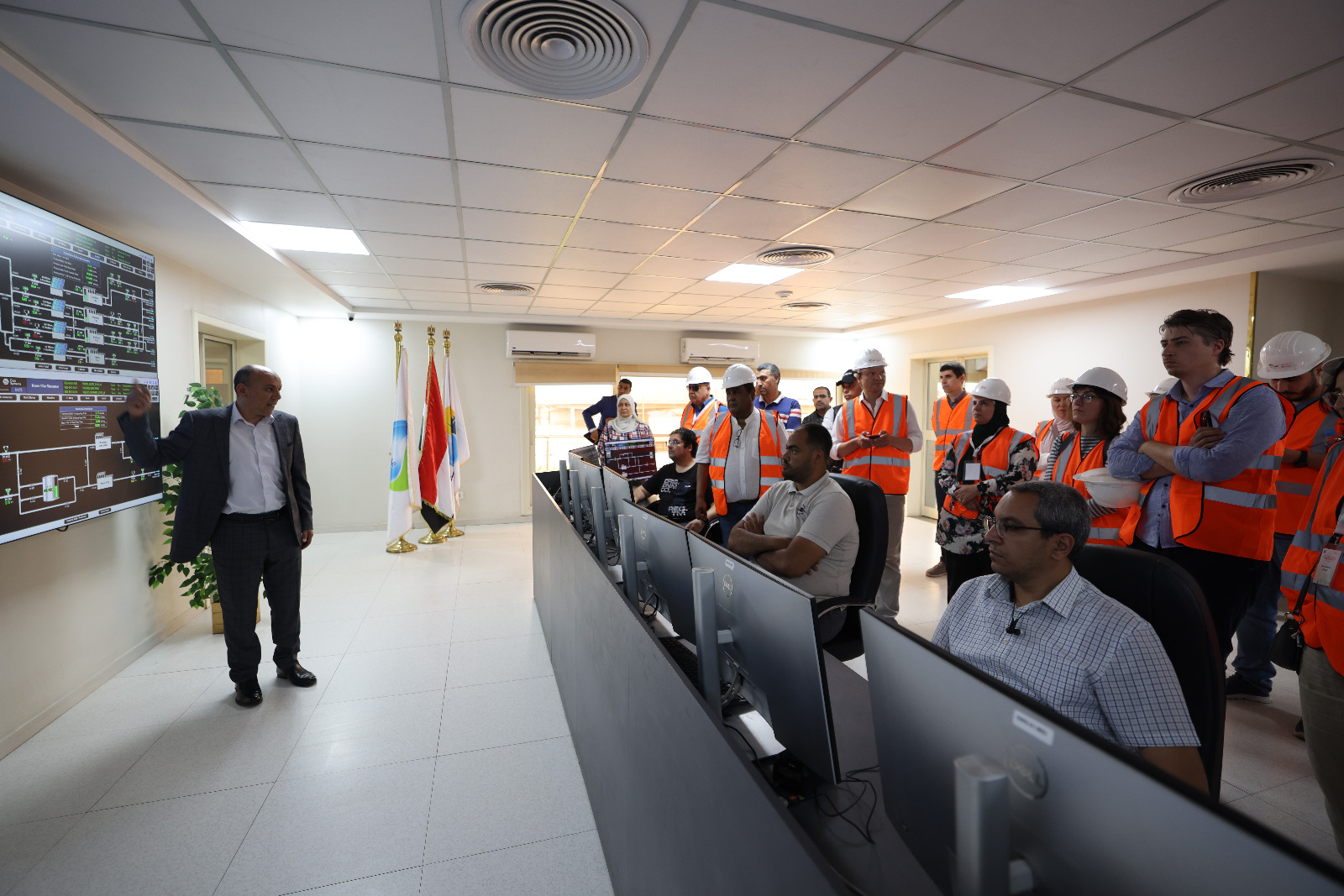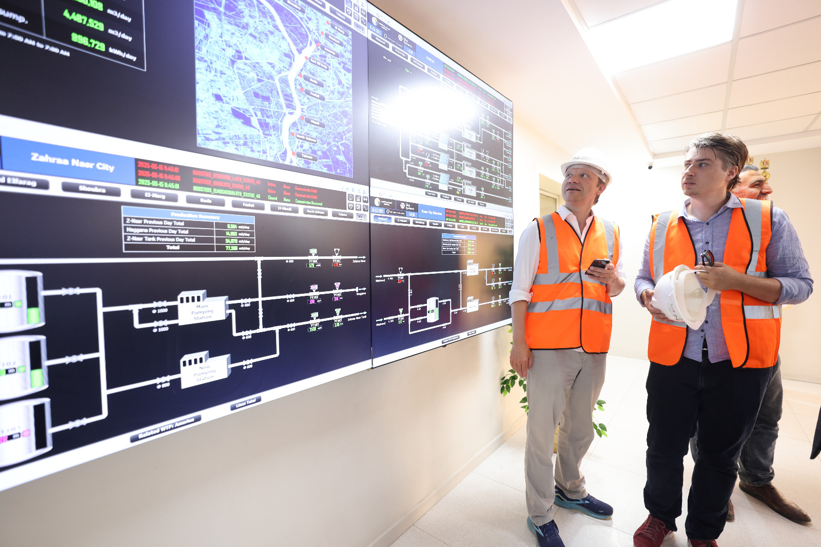 كما قام الوفد بجولة داخل منظومة التحكم المركزي (SCADA) بالمحطة، حيث استمعوا لشرح وافٍ من مدير عام التحكم المركزي حول آليات متابعة ضغوط المياه وحالة التشغيل في جميع المحطات التابعة للشركة.