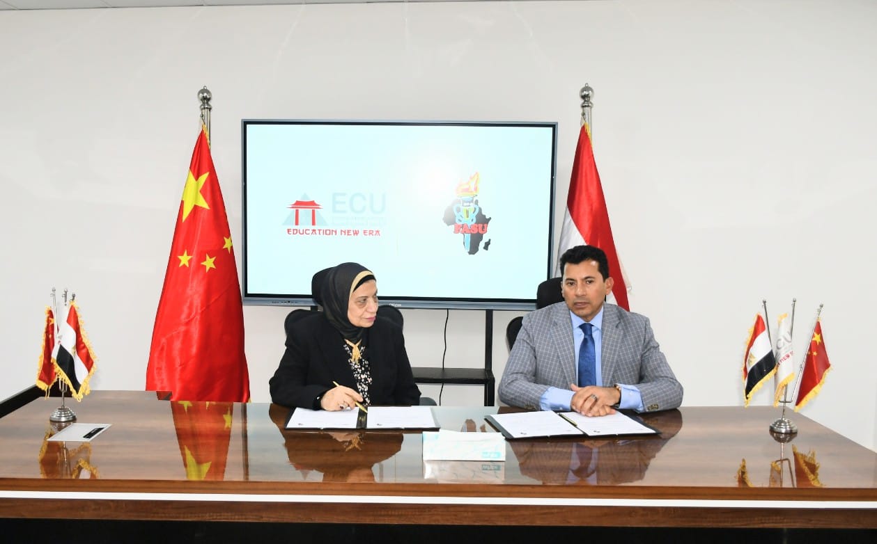 وقّع الدكتور أشرف صبحي، وزير الشباب والرياضة ورئيس الاتحاد الأفريقي للرياضة الجامعية، والدكتورة كريمة عبد الكريم رئيس مجلس أمناء الجامعة المصرية الصينية، بروتوكول تعاون مشترك مع الجامعة المصرية الصينية، لدعم ونشر الرياضة الجامعية في قارة افريقيا وتوسيع قاعدة المشاركة بها على مستوى المؤسسات الأكاديمية على مستوى القارة الأفريقية.