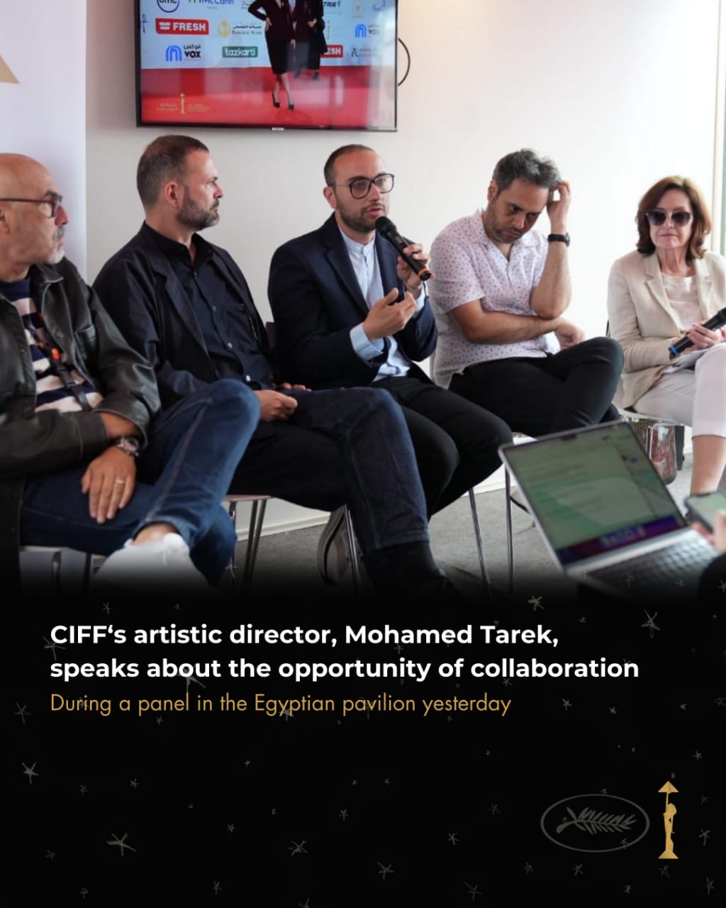 شارك الناقد محمد طارق، المدير الفني لمهرجان القاهرة، في جلسة نقاشية بعنوان "بناء الروابط بين مهرجانات الأفلام العربية"، وذلك في إطار المشاركة الاستثنائية لمهرجان القاهرة السينمائي الدولي في فعاليات مهرجان كان السينمائي الدولي في دورته الثامنة والسبعين.