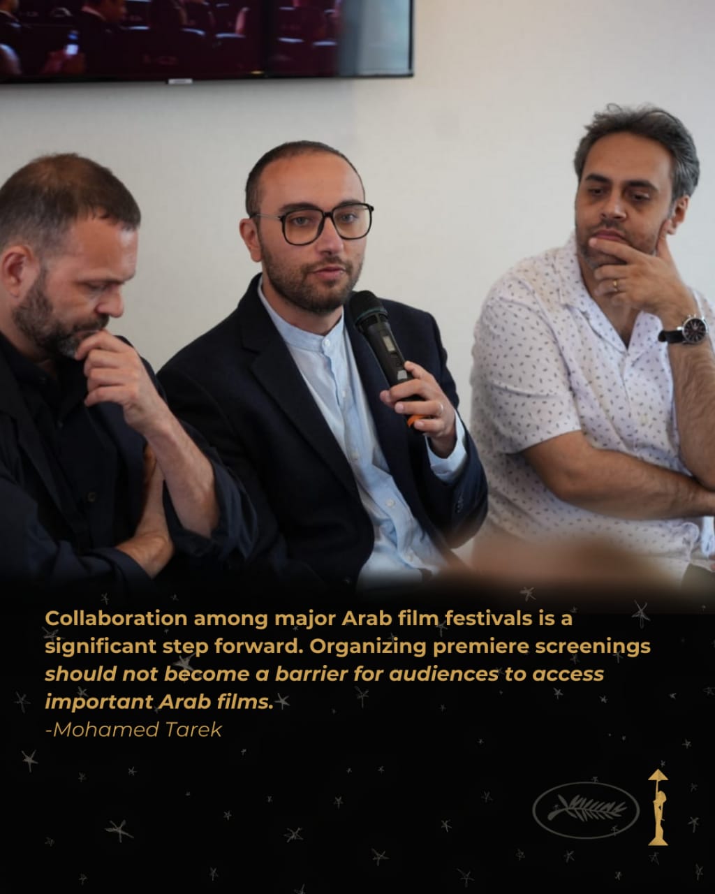وصرّح الناقد محمد طارق قائلًا: "تحدّثنا عن كيف أن هذه خطوة مهمّة للمهرجانات العربية، إذ تجتمع أربعة مهرجانات عربية كبرى للمرّة الأولى، وعن أنّ التعاون هو السبيل إلى تطوّر كلّ من الأفلام والمهرجانات. كما تطرّقنا إلى كيفية تنظيم عروض الأفلام الأولى في المنطقة، وضرورة ألّا تُشكّل هذه العروض عائقًا أمام الجماهير لمشاهدة الأفلام العربية المهمّة."