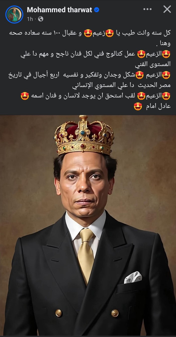 ونشر ثروت عبر صفحته على موقع التواصل الاجتماعي الفيسبوك: “كل سنه وأنت طيب يا زعيم وعقبال ١٠٠ سنه سعاده صحه وهنا”.