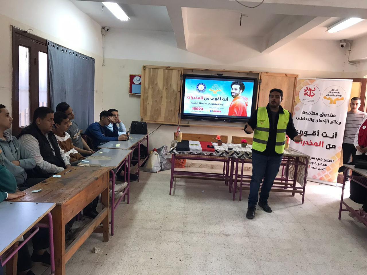 تلقى الدكتور عمرو عثمان مدير صندوق مكافحة وعلاج الإدمان والتعاطي، تقريرا عن أنشطة وبرامج التوعية على مدار الثلث الأول من عام 2025 وذلك في الفترة من بداية يناير وحتى نهاية إبريل ، حيث تم تنفيذ عدد 7184 نشاط في مختلف المحافظات على مستوى الجمهورية منهم 807 نشاط في 189 قرية من القرى المستهدفة من المبادرة الرئاسية "حياة كريمة" بالتعاون مع مؤسسة "حياة كريمة" ويتم تنظيم زيارات منزلية للأسر للتوعية بآليات الوقاية الأولية والاكتشاف المبكر للتعاطي وكيفية التواصل مع الخط الساخن للصندوق 16023 للحصول على كافة خدمات المشورة والعلاج لمرضى الإدمان مجانا وفى سرية تامة، أيضا تنفيذ دوري رياضي لأبناء الأسر في هذه القرى تحت شعار "أنت أقوى من المخدرات"؛ لتعزيز الوعي والتثقيف الأسري بما يكفل تمكين الشباب والأسر في هذه القرى من مواجهة مشكلة المخدرات وسبل المواجهة.