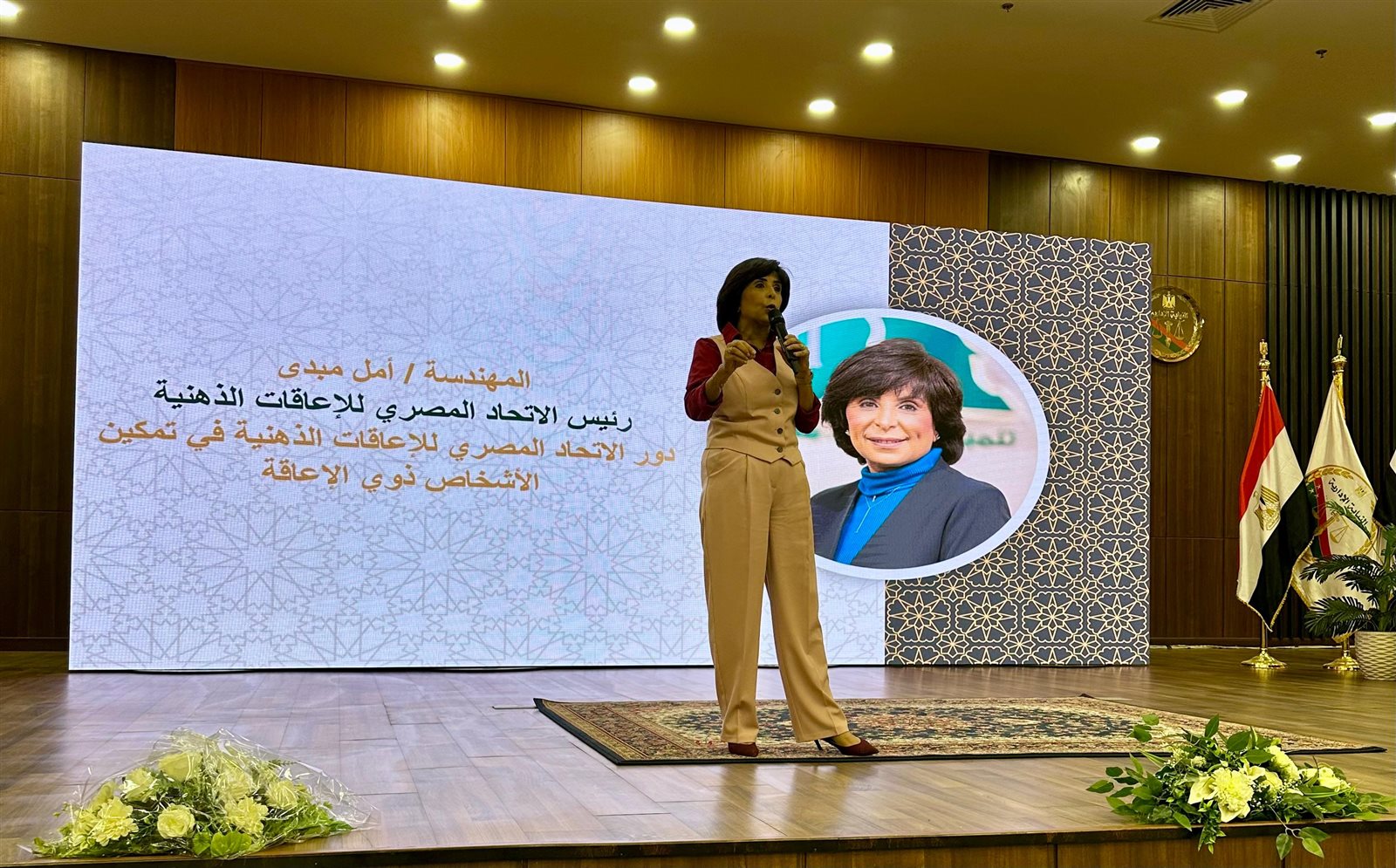 كلمة المهندسة أمل مبدّى – رئيس الإتحاد المصري للإعاقات الذهنية، والتي استعرضت فيها "دور الإتحاد المصري للإعاقات الذهنية في تمكين الأشخاص ذوي الإعاقة".