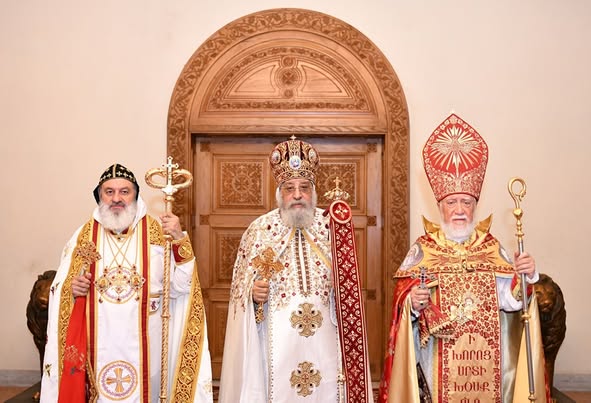 وأضاف: "بمناسبة مجمع نيقية المسكوني الذي عقد عام 325 ميلادية عقدنا بالأمس جلسة رمزية، الآباء البطاركة والمطارنة والأساقفة من الثلاث كنائس، تَلَوْنا فيها قانون الإيمان ثم استمعنا لقوانين مجمع نيقية العشرين، وطرحت بعض المقترحات التي تزيد محبتنا بشكل أكبر."