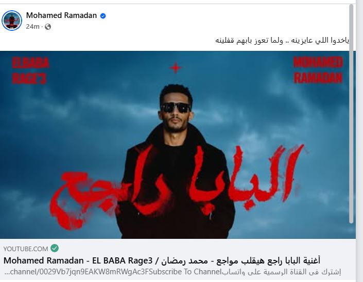 محمد رمضان يروّج لأغنيته الجديدة:"ياخدوا اللي عايزينه.. ولما تعوز بابهم قافلينه"