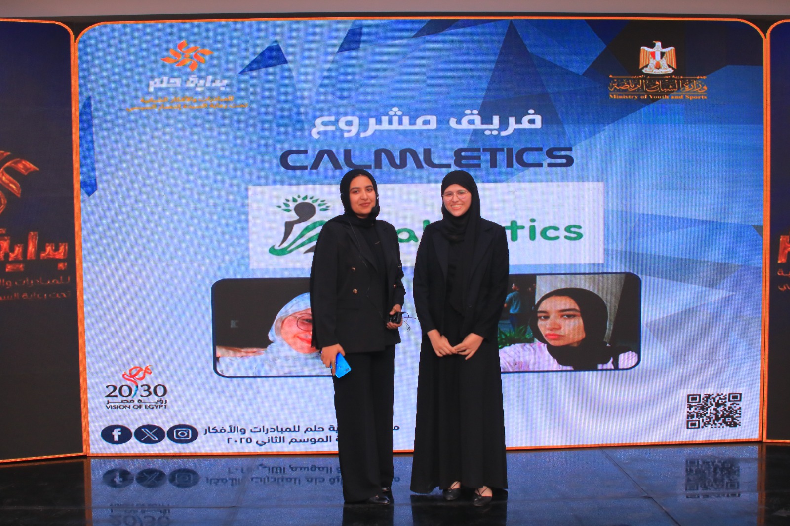 ودخلت السباق فكرة "Calmletics " ، وهو تطبيق بيبدأ بتقييم دقيق لمستوى القلق عند الرياضيين، وبناء عليه يتم تقديم خطة علاجية مخصصة تشمل تقنيات مثل التأمل، والعلاج بالتعرض، وجلسات VR تفاعلية ، كما يوفر مجتمع داعم حسب درجة القلق واهتمامات المستخدم، مع إمكانية متابعة المدربين للرياضيين من خلال مجتمعات خاصة ومهام تطبيقية بعد كل جلسة.