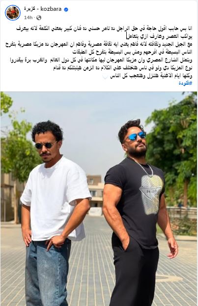 " بيعرف يواكب العصر".. كزبرة يوجه رسالة لـ تامر حسني بعد تعاونه معه (صورة)
