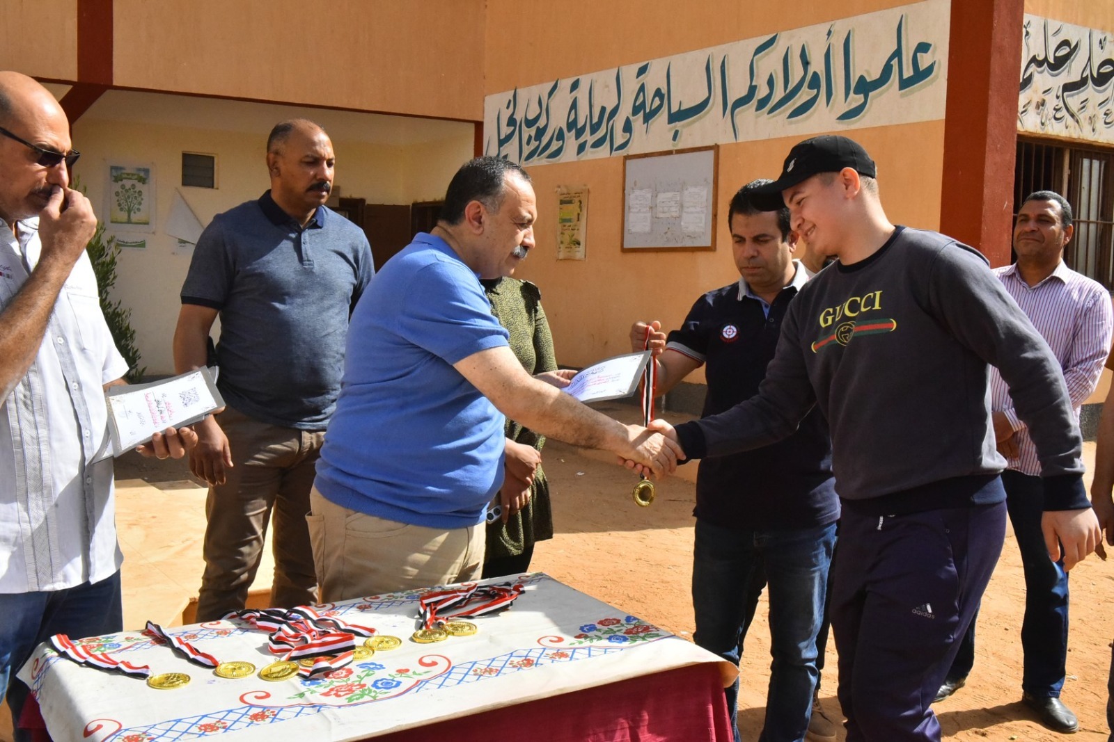 وفي ختام الجولة، وجه المحافظ بإهداء بعض الطلاب ملابس مدرسية، كما كلف مديرية الشباب والرياضة بتقديم ملابس رياضية للطلاب المكرمين دعمًا لهم وتحفيزًا على مواصلة ممارسة الأنشطة الرياضية.