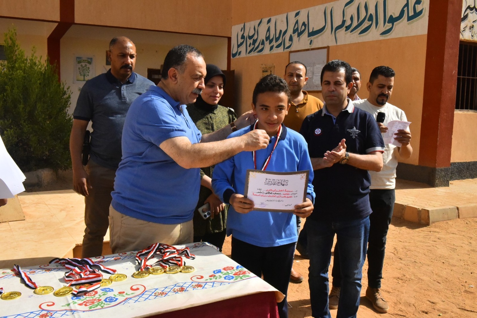 محافظ أسيوط يتفقد مدرسة النيل الإعدادية ويكرم أوائل دوري المدرسة الرياضي