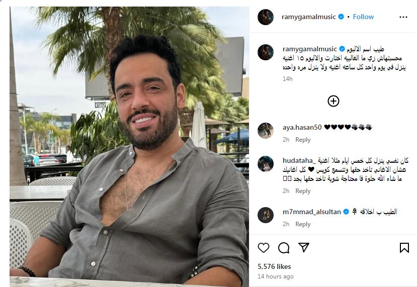 وكتب رامي عبر صفحته الرسمية "إنستجرام" " طيب اسم الالبوم محسبتهاش زي ما الغالبية اختارت الالبوم ١٥ اغنيه ينزل في يوم واحد كل ساعة اغنيه ولا ينزل مرة واحدة".