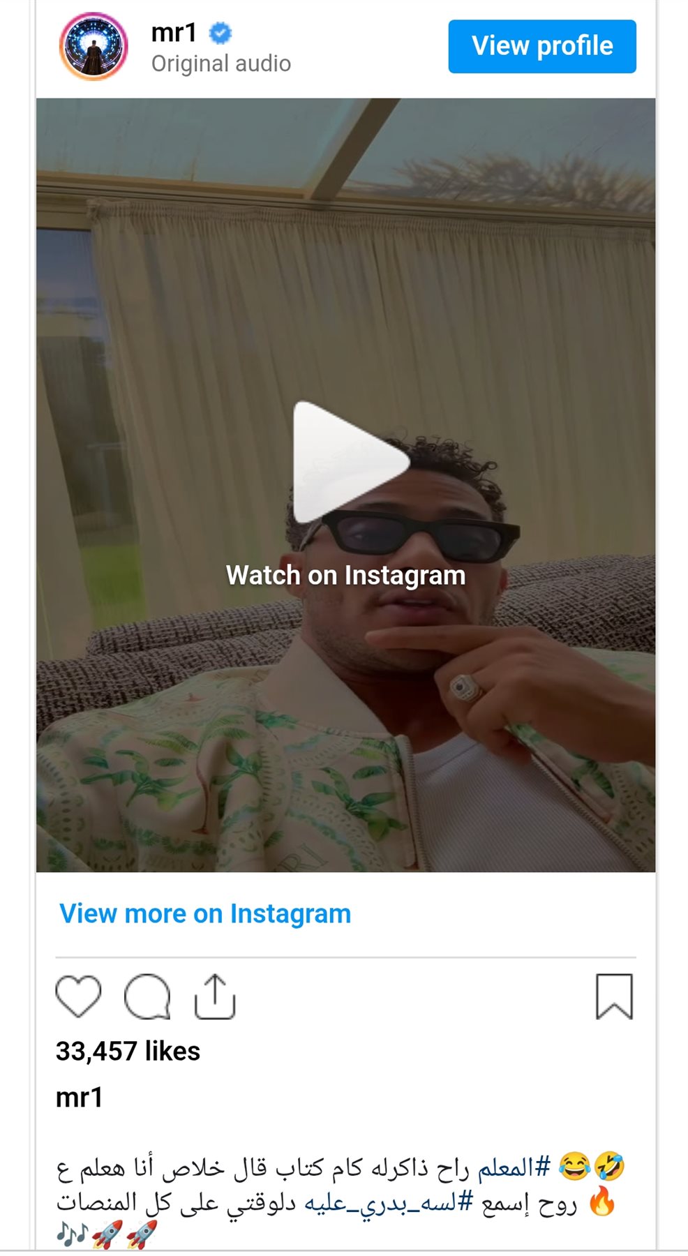 ونشر رمضان مقطع فيديو من الأغنية عبر حسابه الشخصي بموقع إنستجرام، وعلّق عليه قائلًا: "راح ذاكر له كام كتاب قال خلاص أنا معلم، كل ما يتنطط هروحه معيط، لسه بدري عليك يا سنتي أنا مترين".