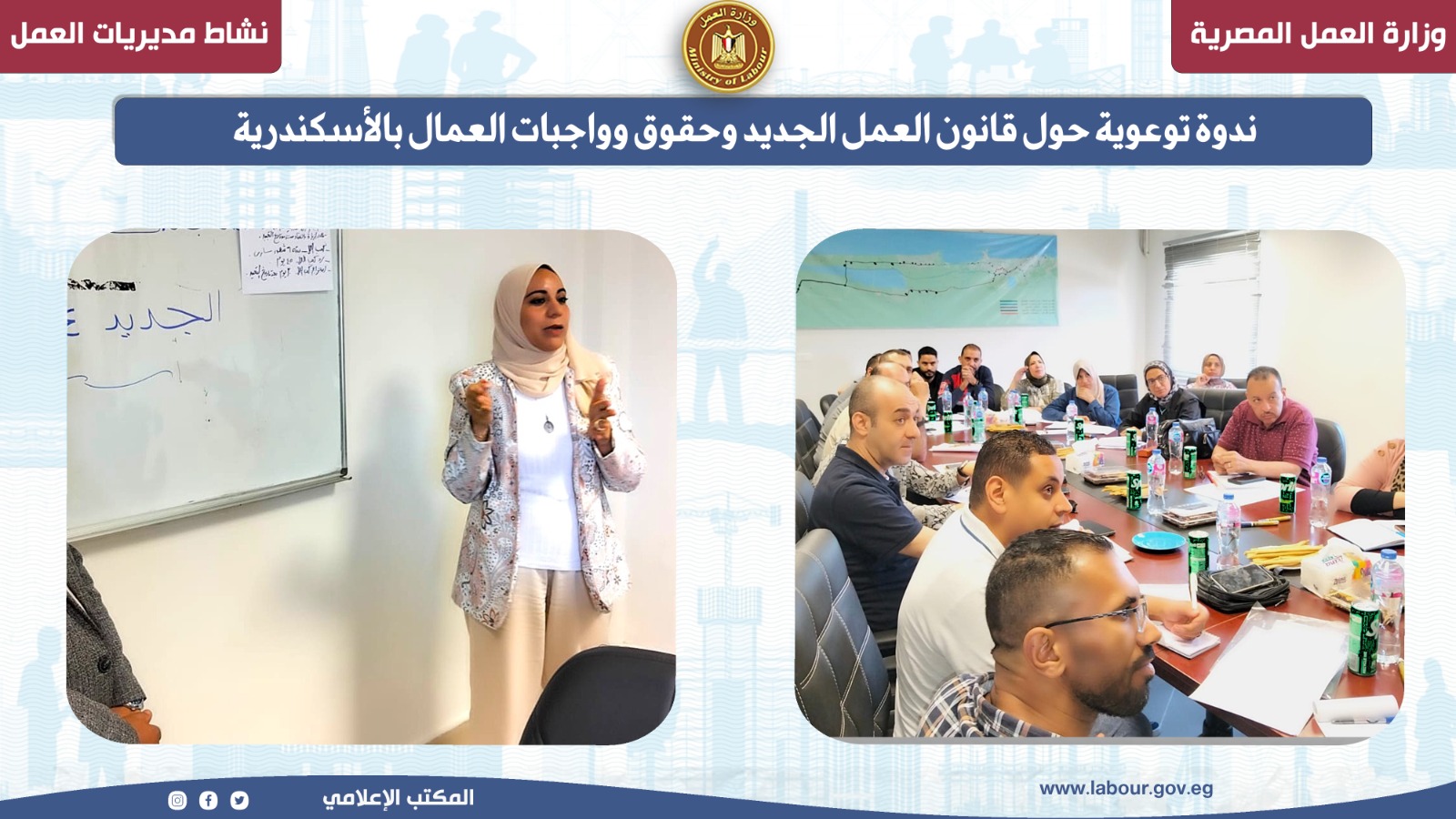 ندوة توعوية حول قانون العمل الجديد وحقوق وواجبات العمال بالإسكندرية