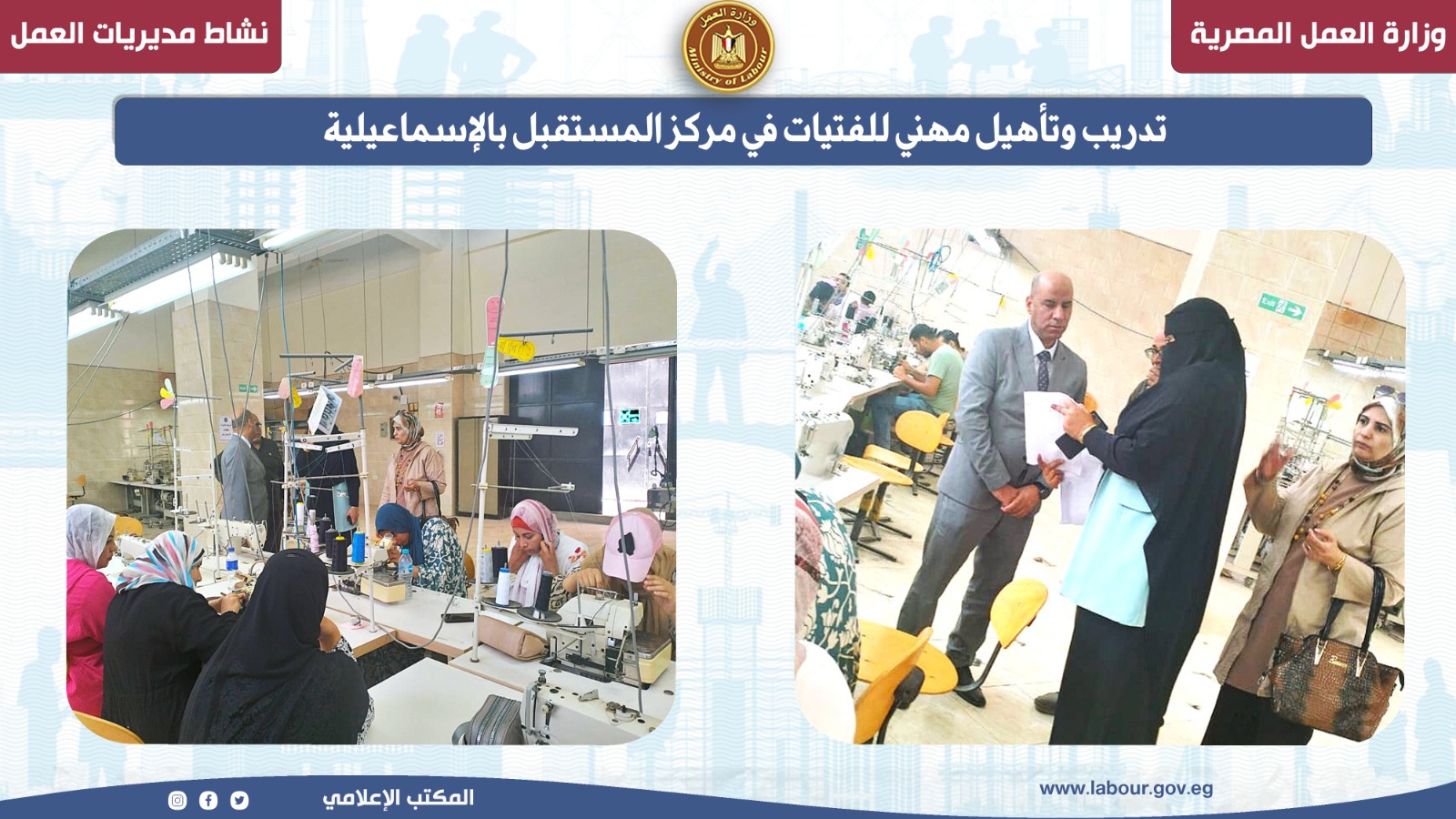 تابع حسن رداد، مدير مديرية العمل بمحافظة الإسماعيلية، فعاليات الدورة التدريبية المقامة حاليًا لتأهيل عدد من الفتيات على مهنة الخياطة، وذلك خلال زيارة ميدانية لمركز التدريب المهني بمدينة المستقبل التابع للمديرية، في إطار جهود الوزارة لدعم التمكين الاقتصادي ورفع كفاءة القوى العاملة.