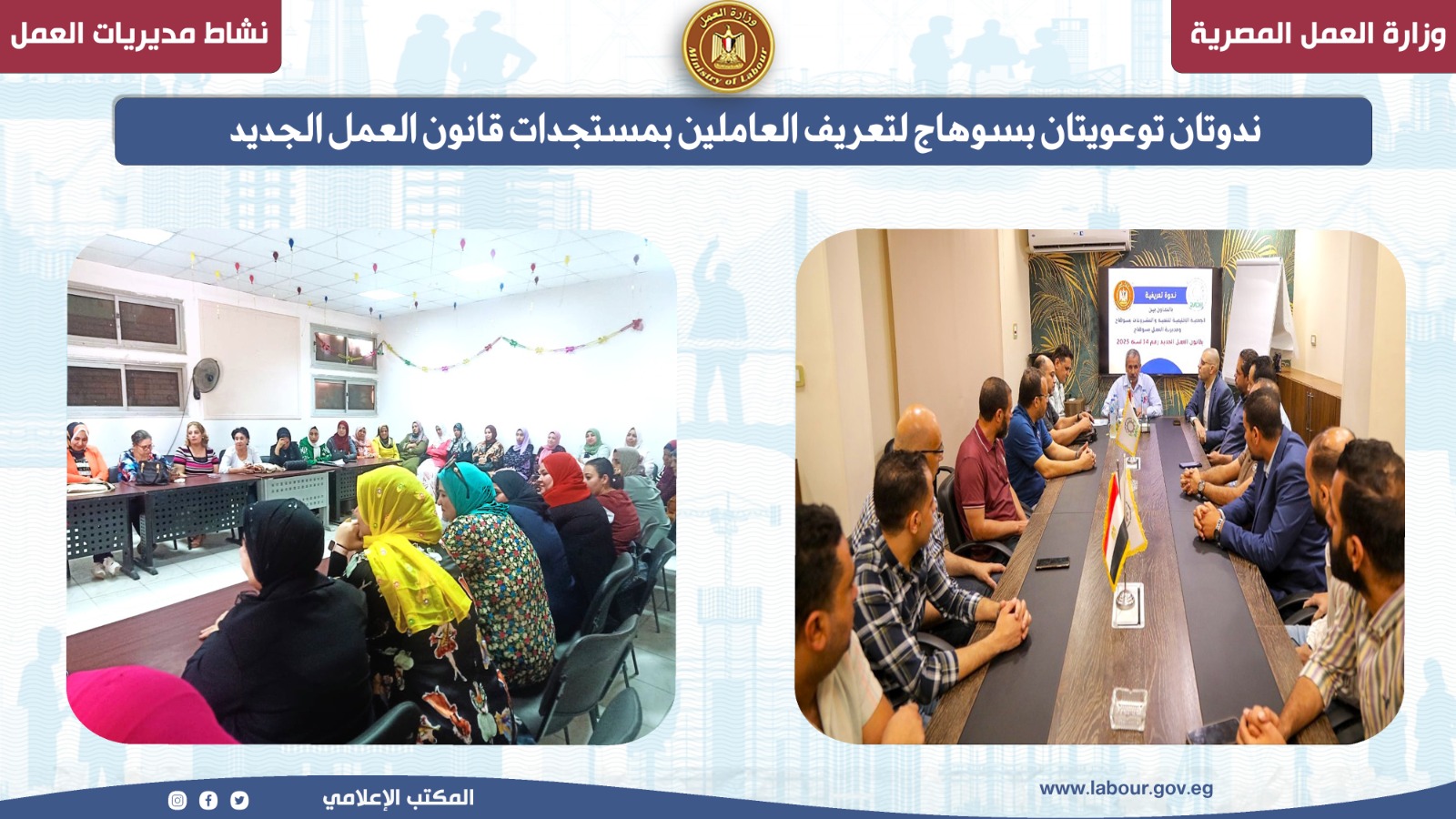 ندوتان توعويتان بسوهاج لتعريف العاملين بمستجدات قانون العمل الجديد
