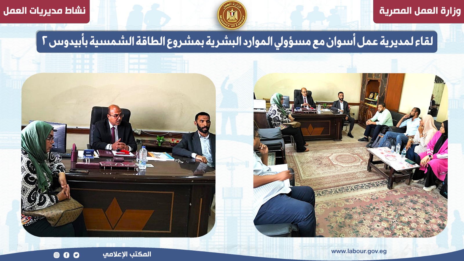 لقاء بين مديرية العمل بأسوان و مسؤولي الموارد البشرية بمشروع الطاقة الشمسية بأبيدوس