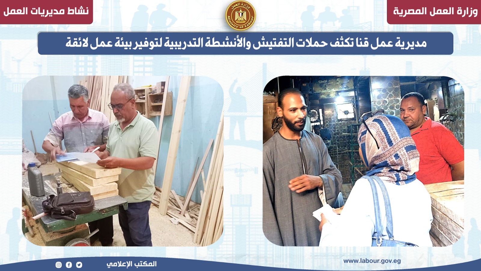 مديرية عمل قنا تكثف حملات التفتيش والأنشطة التدريبية لتوفير بيئة عمل لائقة