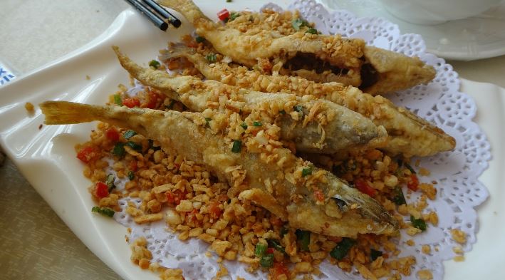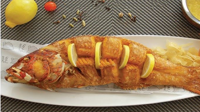 يقلى السمك بزيت حار وغزير الى ان يصبح مقرمشا وذهبي اللون .