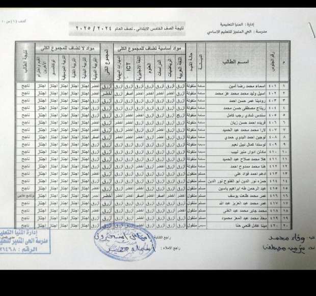 هذا يشمل نتائج الصفوف من الأول الابتدائي وحتى السادس الابتدائي، بالإضافة إلى نتائج الصفين الأول والثاني الإعدادي والثانوي.