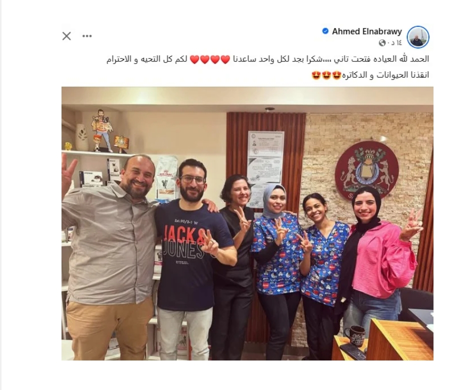 وكتب النبرواي عبر حسابه الشخصي على "فيس بوك": "الحمد لله العيادة فتحت تاني.. شكرًا بجد لكل واحد ساعدنا، لكم كل التحية والاحترام، وأنقذنا الحيوانات والدكاترة".