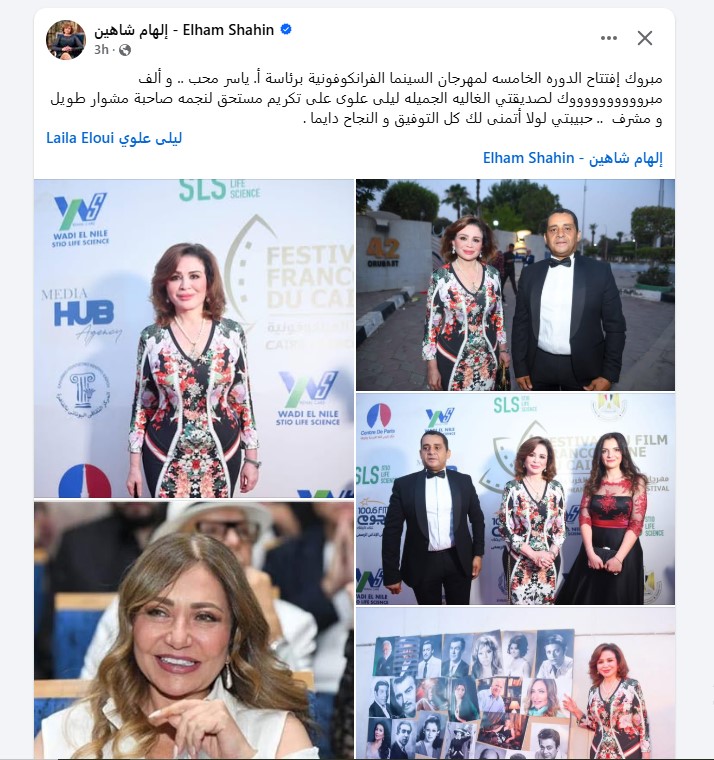 ونشرت إلهام شاهين على موقع التواصل الإجتماعي الفيسبوك: “مبروك افتتاح الدورة الخامسة لمهرجان السينما الفرانكوفونية برئاسة أ. ياسر محب .. وألف مبرووووووووووك لصديقتي الغاليه الجميله ليلى علوى على تكريم مستحق لنجمه صاحبة مشوار طويل ومشرف .. حبيبتي لولا أتمنى لك كل التوفيق و النجاح دايما”.