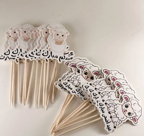 تزيين بعض الأعواد الخشبية الصغيرة بمجموعة من أجمل مجسمات خروف العيد الملونة والمبهجة.