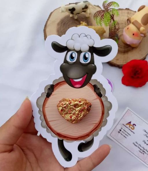 وضع العيدية داخل أكياس من الكاندي، مجسم خروف صغير بالون ملون.