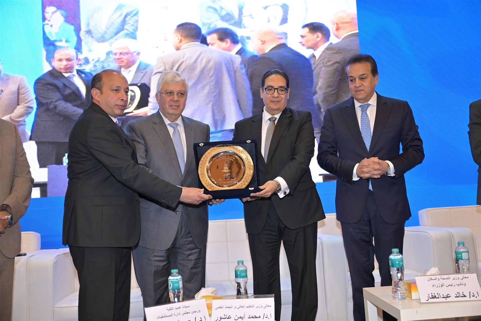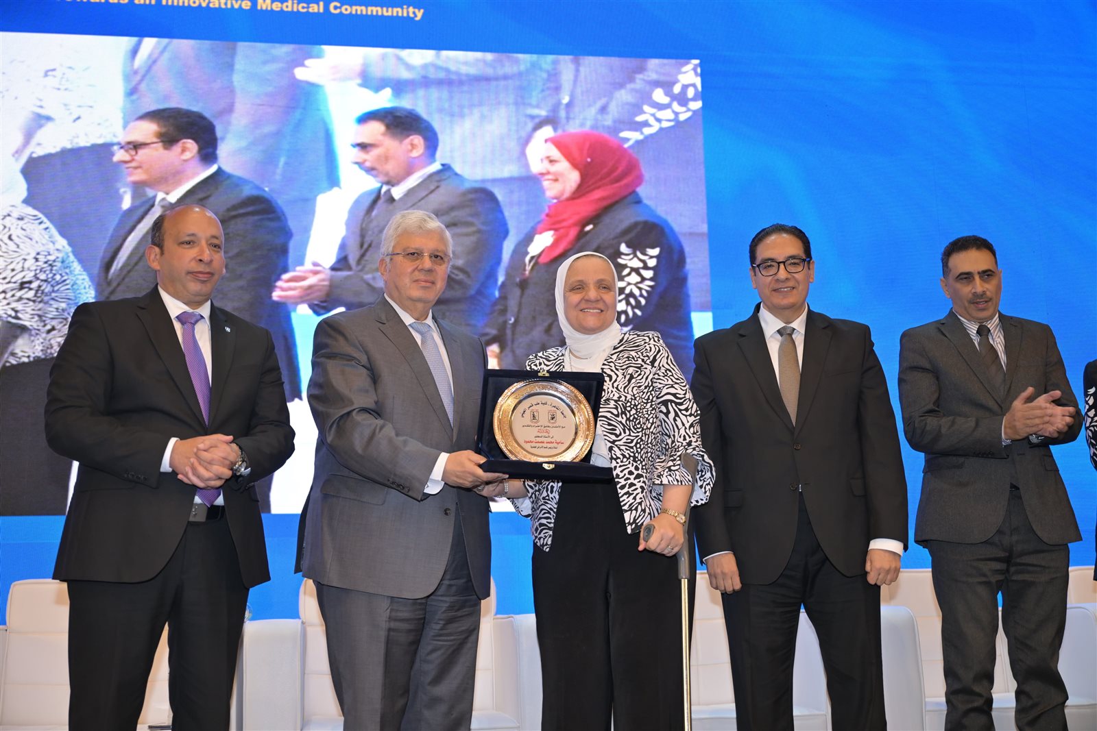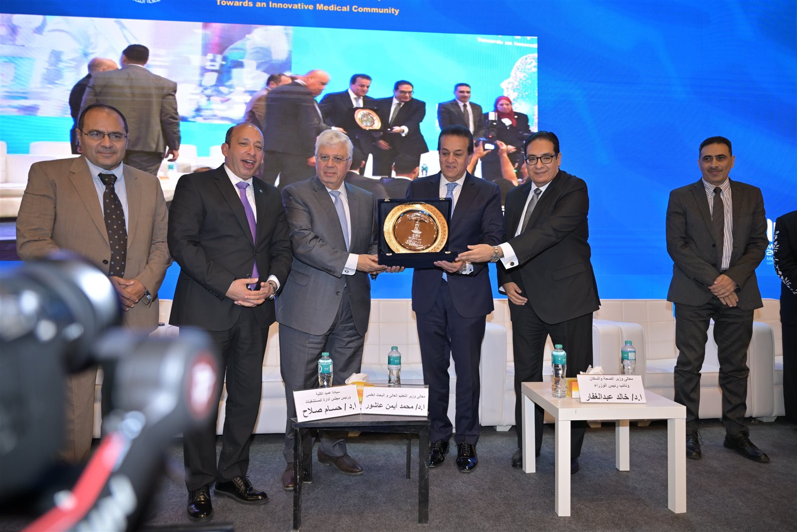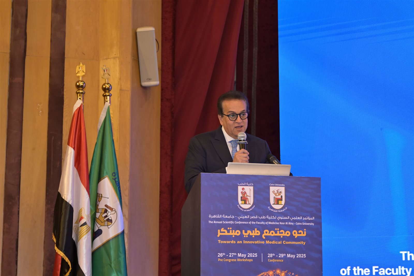شهدت الجلسة الرئيسة للمؤتمر العلمي السنوي لكلية طب قصر العيني تحت عنوان " نحو مجتمع مبتكر"، حضور الدكتور خالد عبد الغفار نائب رئيس مجلس الوزراء للتنمية البشرية وزير الصحة والسكان، والدكتور أيمن عاشور وزير التعليم العالي والبحث العلمي، والدكتور محمد سامي عبد الصادق، رئيس جامعة القاهرة، ولفيف من الوزراء السابقين ورؤساء الجامعات الحكومية والخاصة، والدكتور محمود السعيد نائب رئيس جامعة القاهرة لشئون الدراسات العليا والبحوث، والدكتور حسام صلاح عميد كلية الطب ورئيس مجلس إدارة المستشفيات الجامعية، والدكتور أحمد طه رئيس الهيئة العامة للاعتماد والرقابة الصحية "جهار"، إضافة إلى وكلاء الكلية، ورؤساء الأقسام العلمية، ووفود من ممثلى السفارات، ولفيف من أعضاء هيئة التدريس والطلاب.