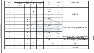 أما عن توزيع درجات المواد للفصل الدراسي الثاني فجاء على النحو التالي:
