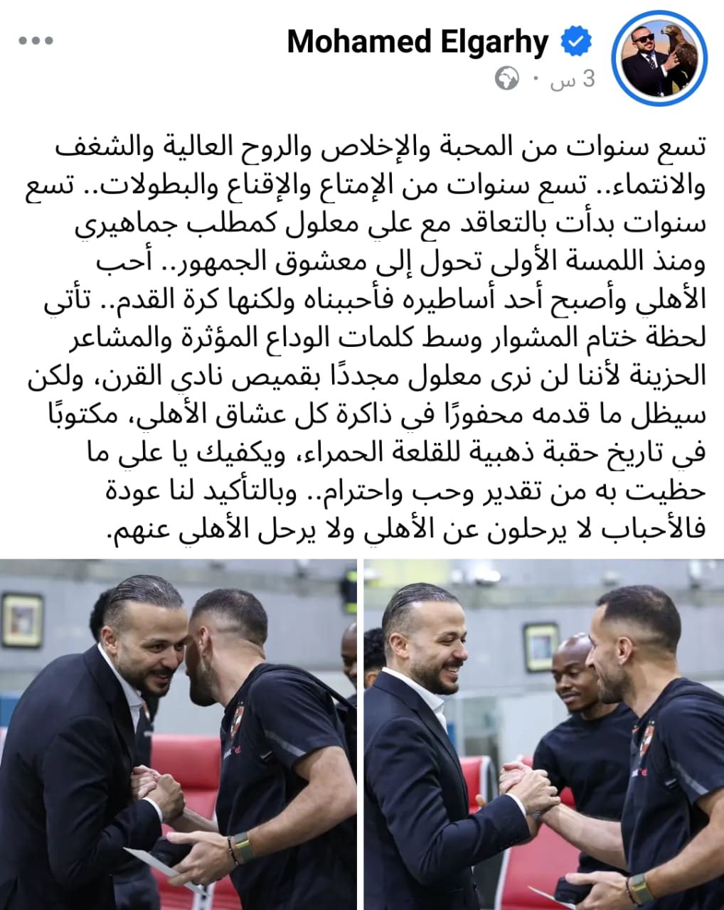 الرسالة التي نشرها الجارحي عبر حسابه الرسمي على "فيس بوك" حملت الكثير من المعاني التي تعكس تقدير الأهلي العميق لمعلول، سواء على المستوى الفني أو الإنساني، بعد سنوات طويلة من العطاء.