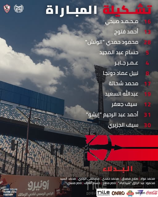 الدفاع: عمر جابر، مصطفى الزناري، حسام عبد المجيد، أحمد فتوح