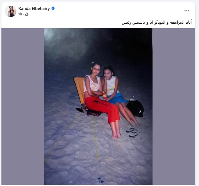 نشرت الفنانة راندا البحيري، صورة تعبر عن أيام المراهقة بينها وبين الفنانة ياسمين الرئيس، وذلك عبر حسابها الرسمي على موقع التواصل الاجتماعي "الفيسبوك".